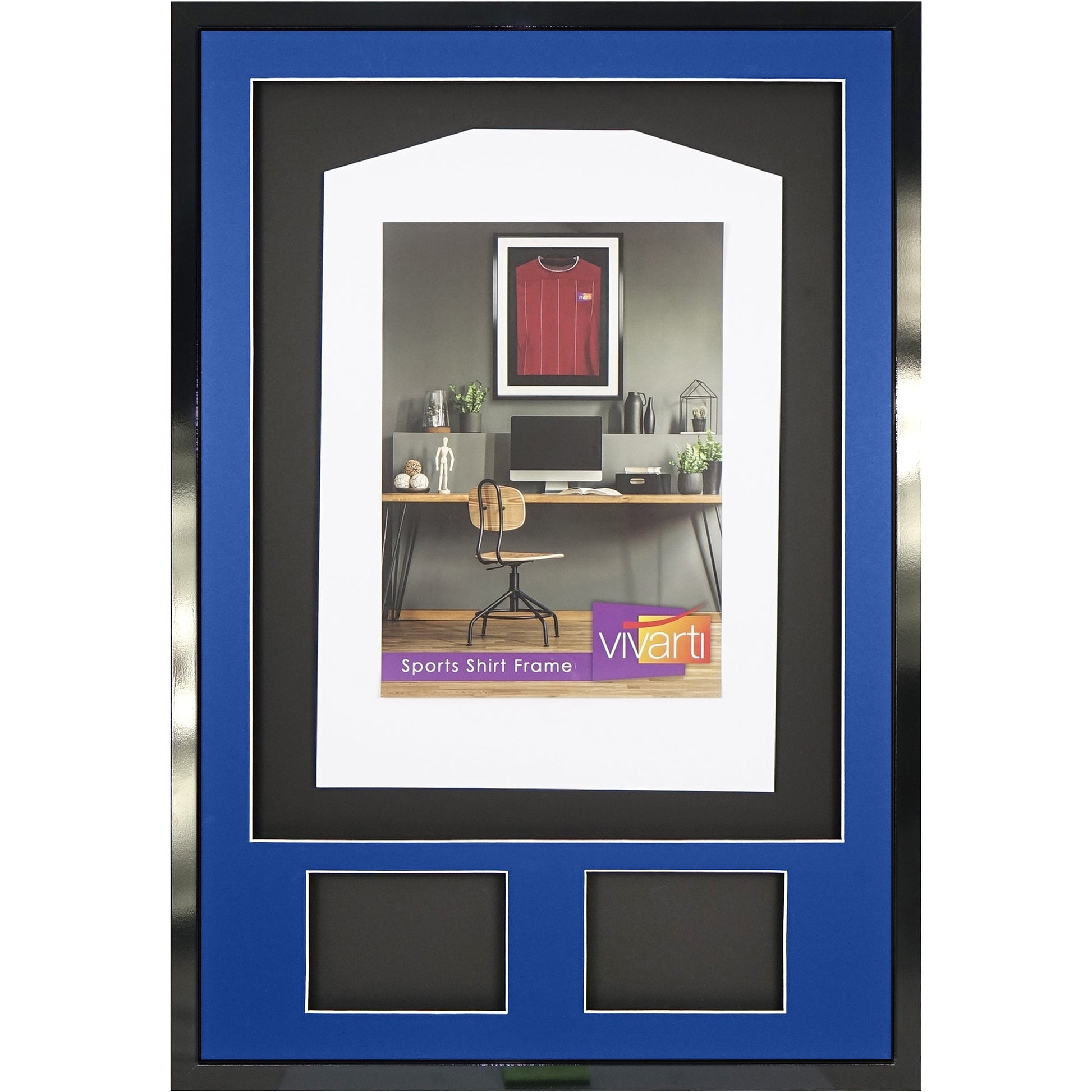 Vivarti DIY 3D Mounted + Double Aperture Sports Shirt Display Gloss Black Frame with Colour Mounts