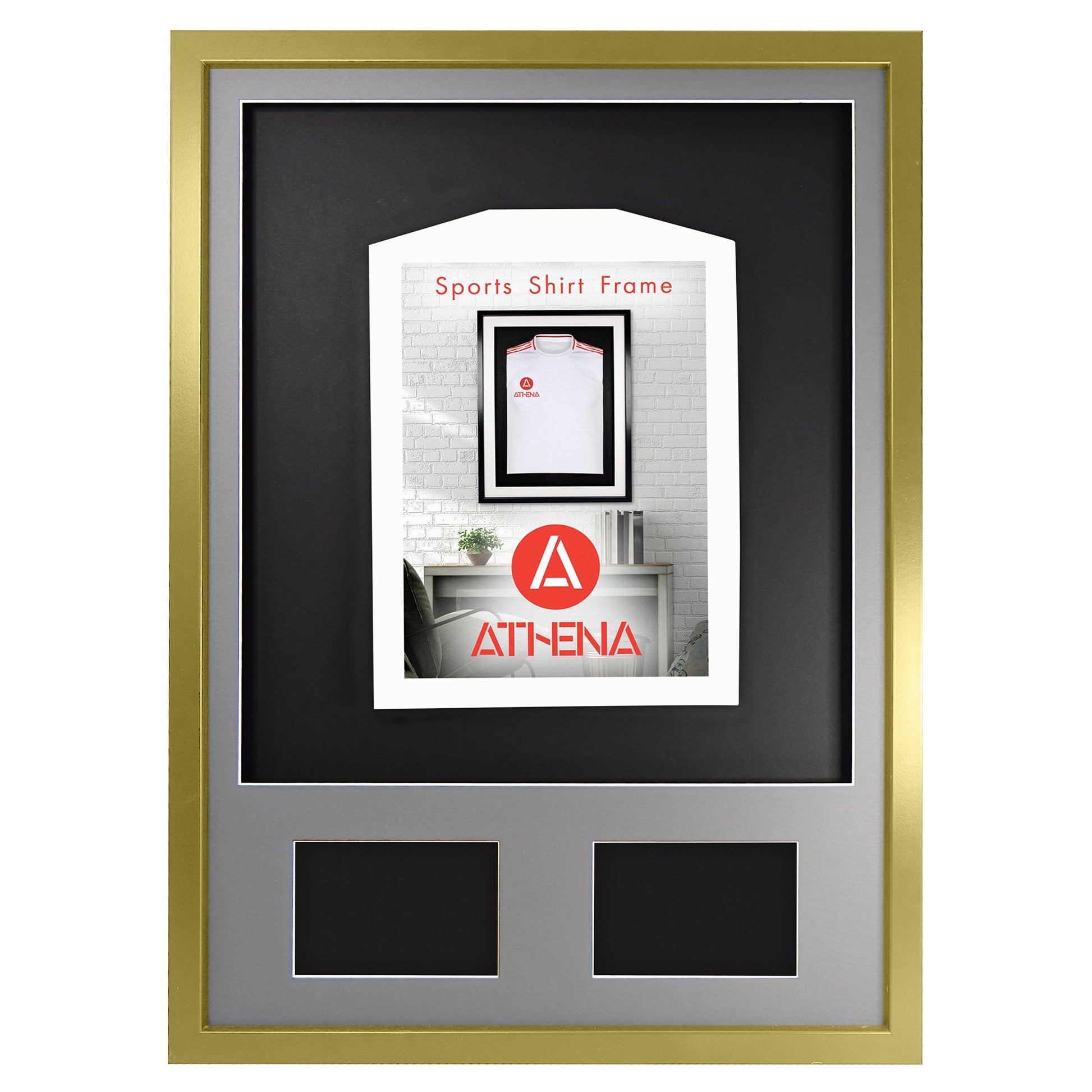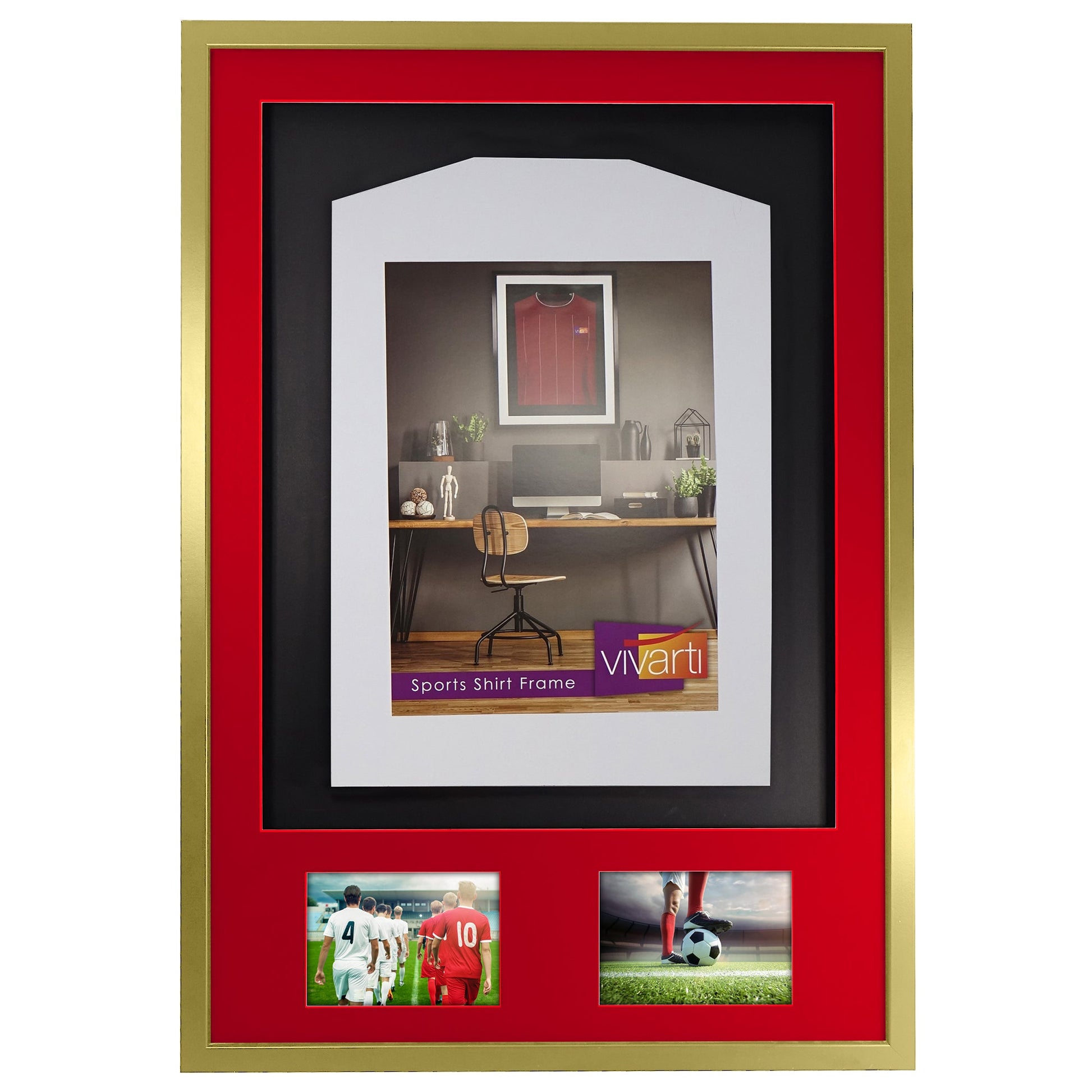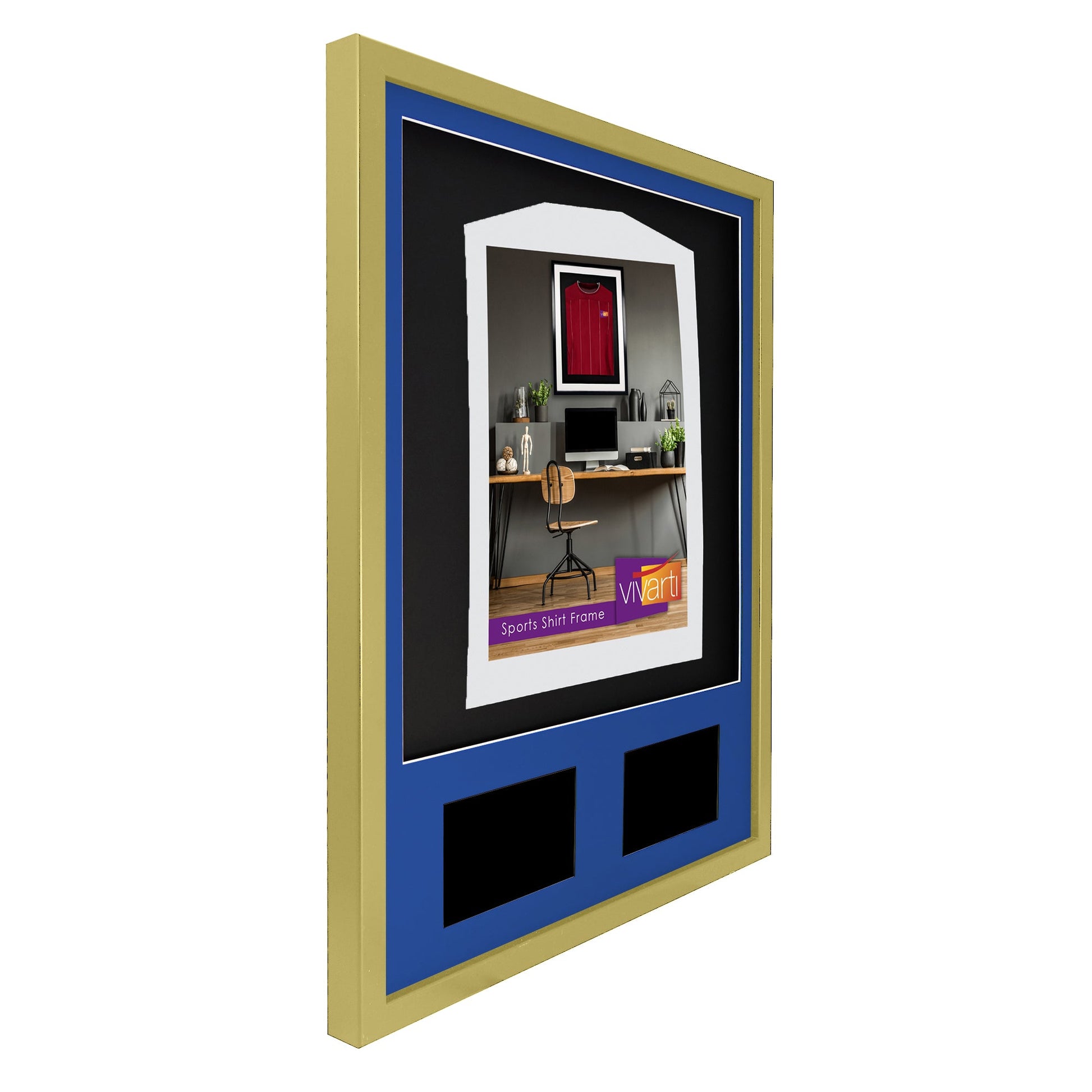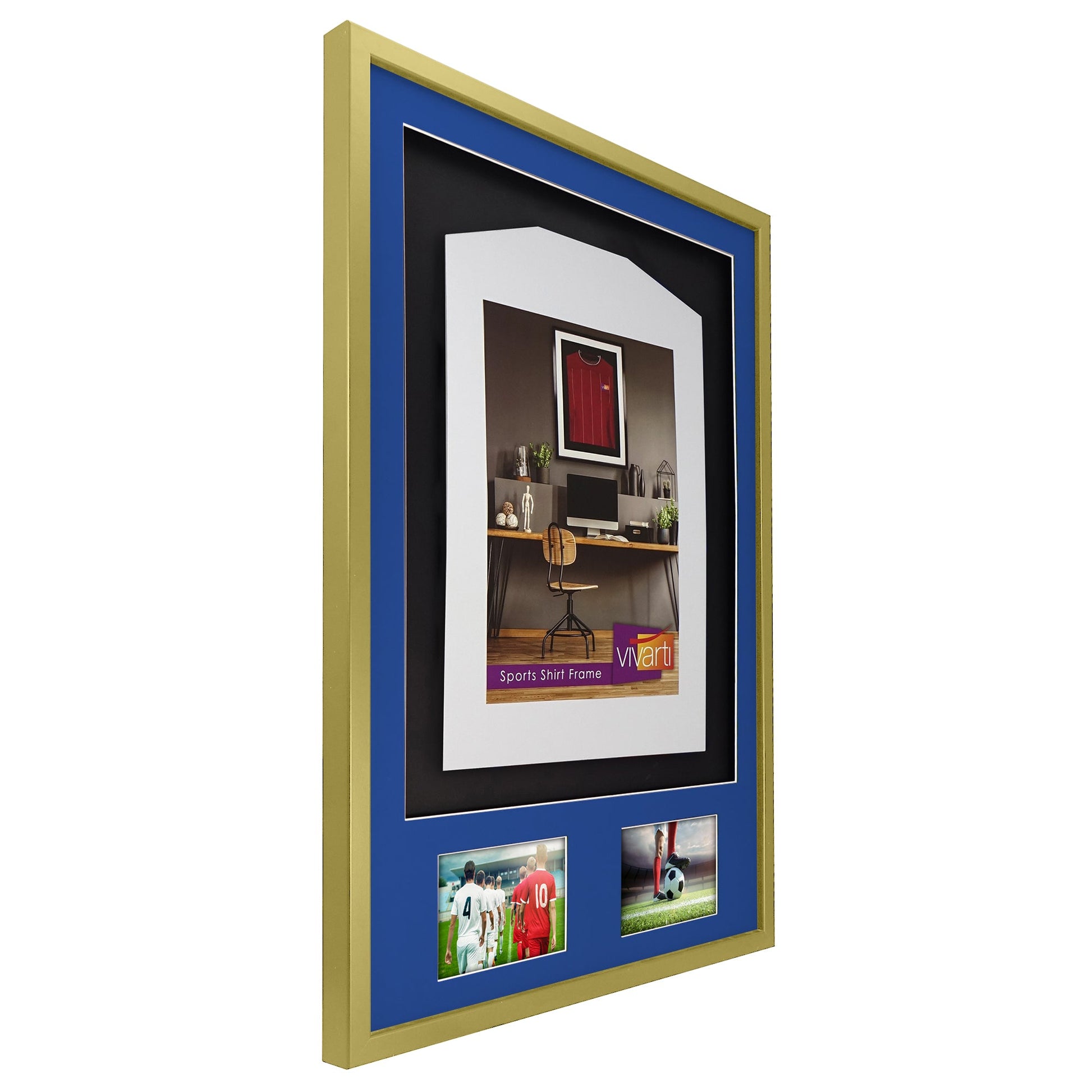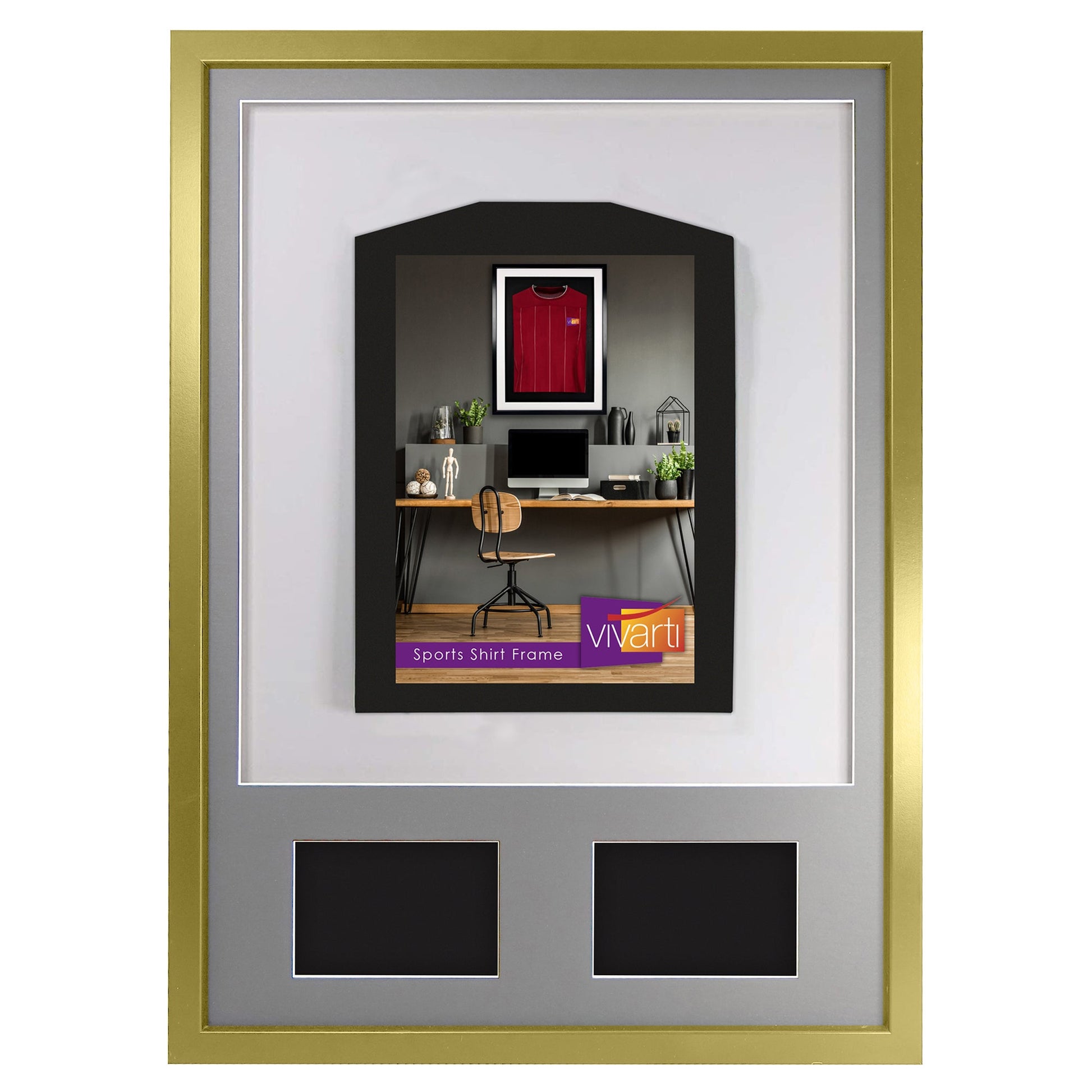 Vivarti DIY 3D Mounted + Double Aperture Sports Shirt Display Gold Frame with Colour Mounts