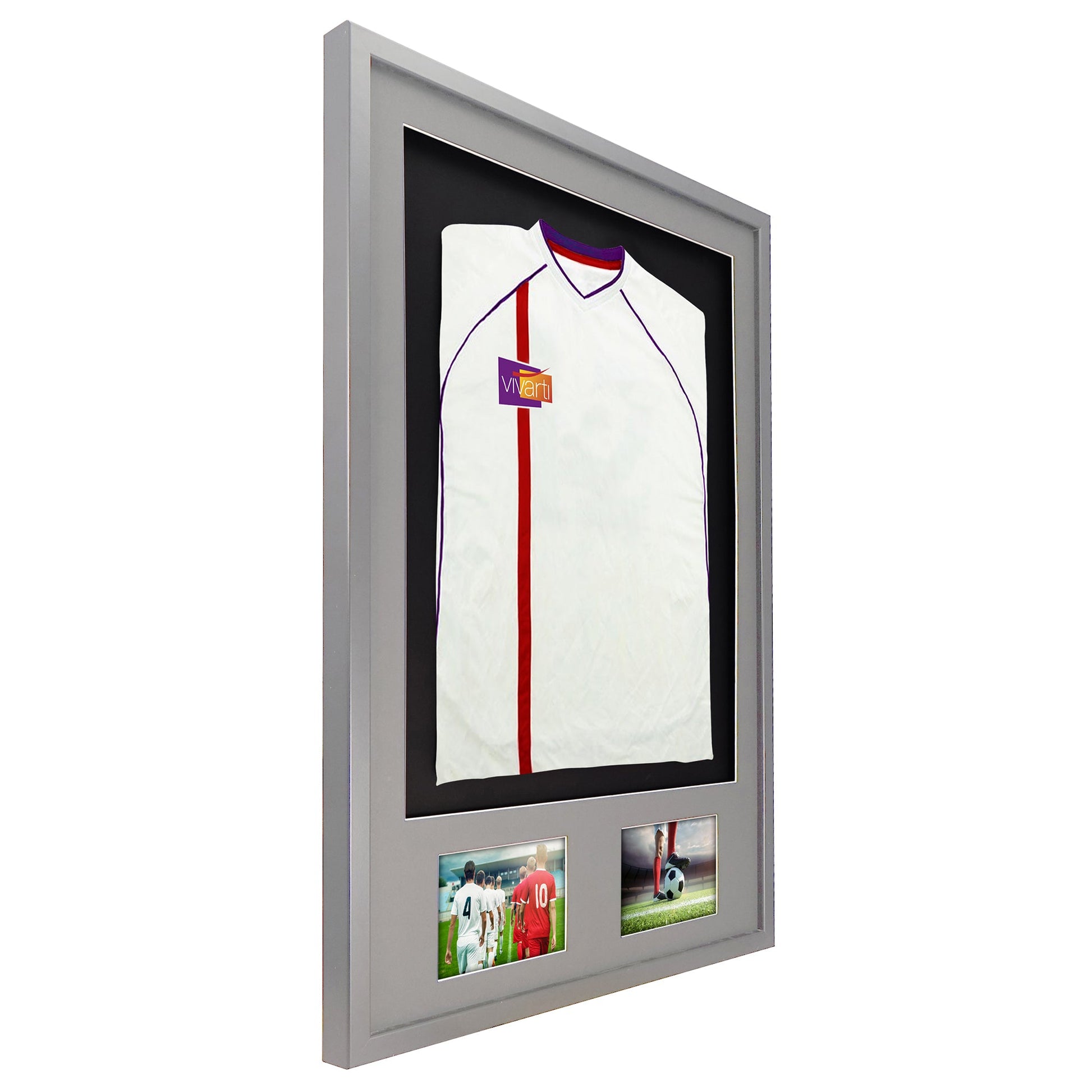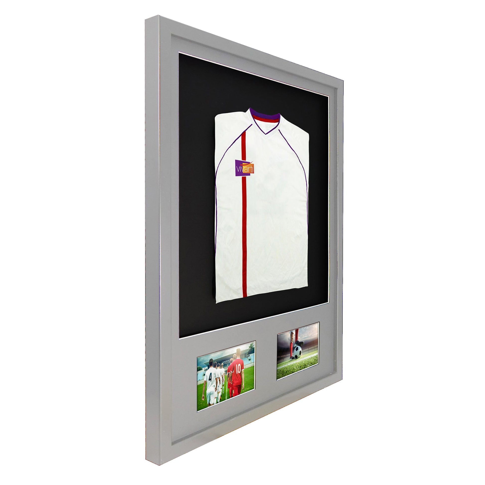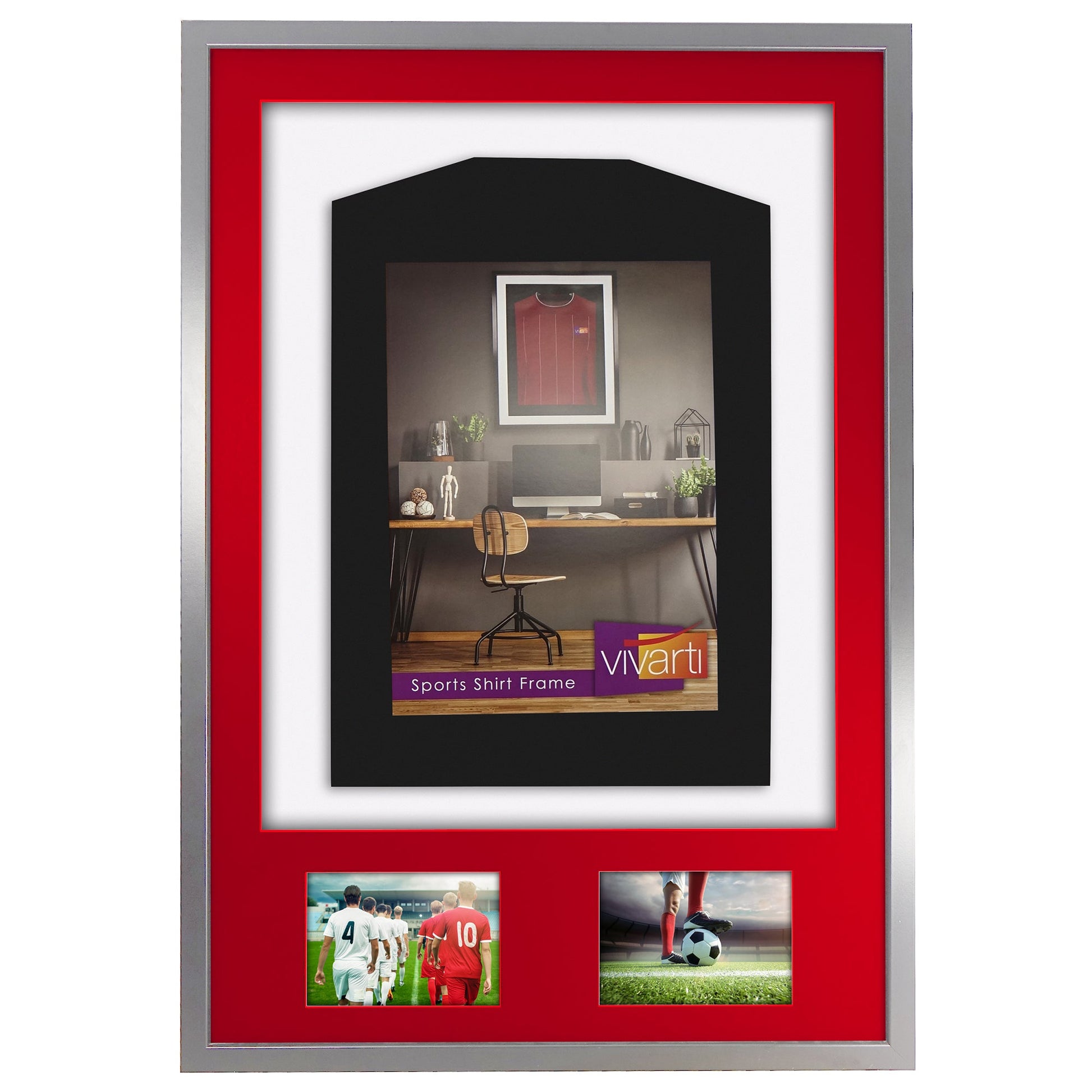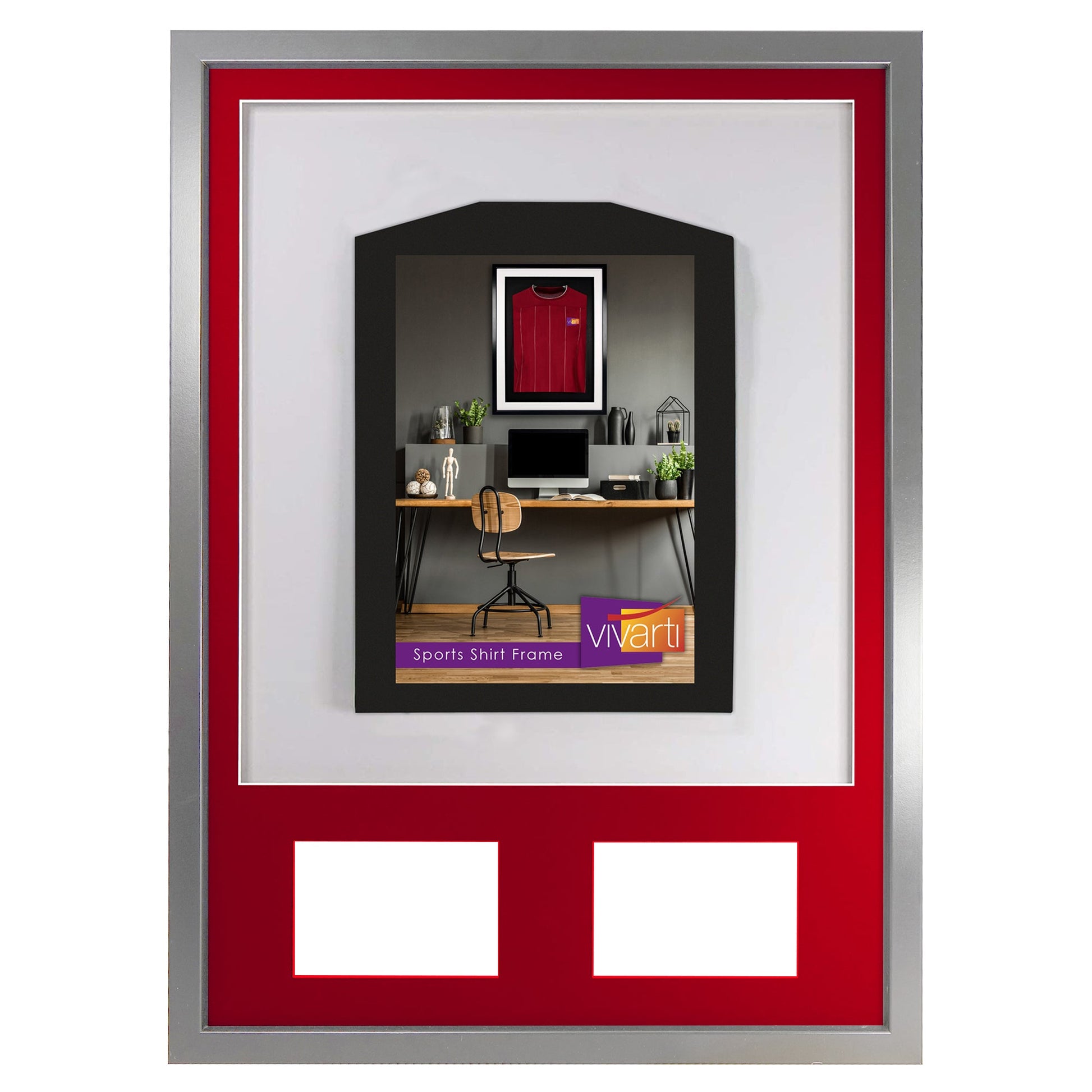 Vivarti DIY 3D Mounted + Double Aperture Sports Shirt Display Silver Frame with Colour Mounts